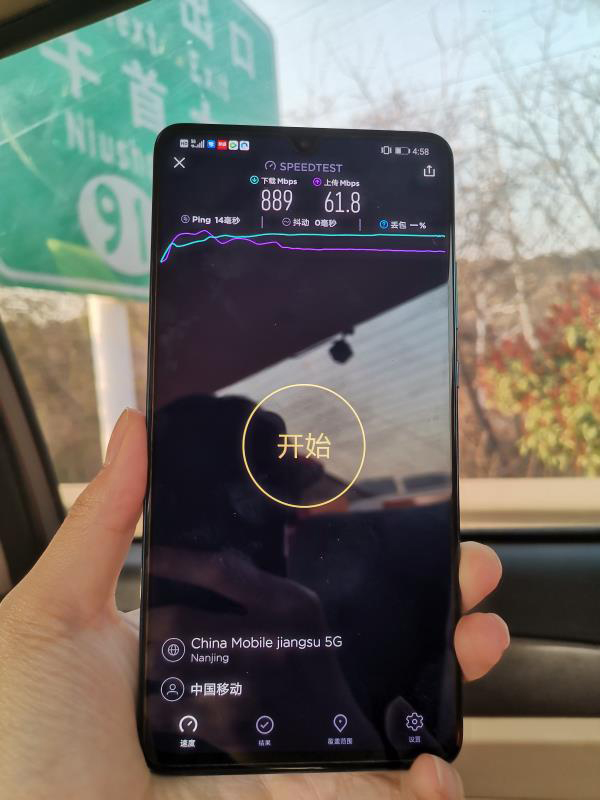 为了保证高速公路网络信号质量,本次5G建设在车辆高速移动通信方面进行了功能增强。据南京移动通信工程师汤咏介绍,通过信道估计增强、快速波束跟踪、频偏校正等优化手段,机场高速5G网络下载峰值速率最高达932Mbps;汽车在高速公路全段120km/h的速度行驶下,5G网络平均下载速率能稳定在550Mbps以上,且全程“不掉线”。