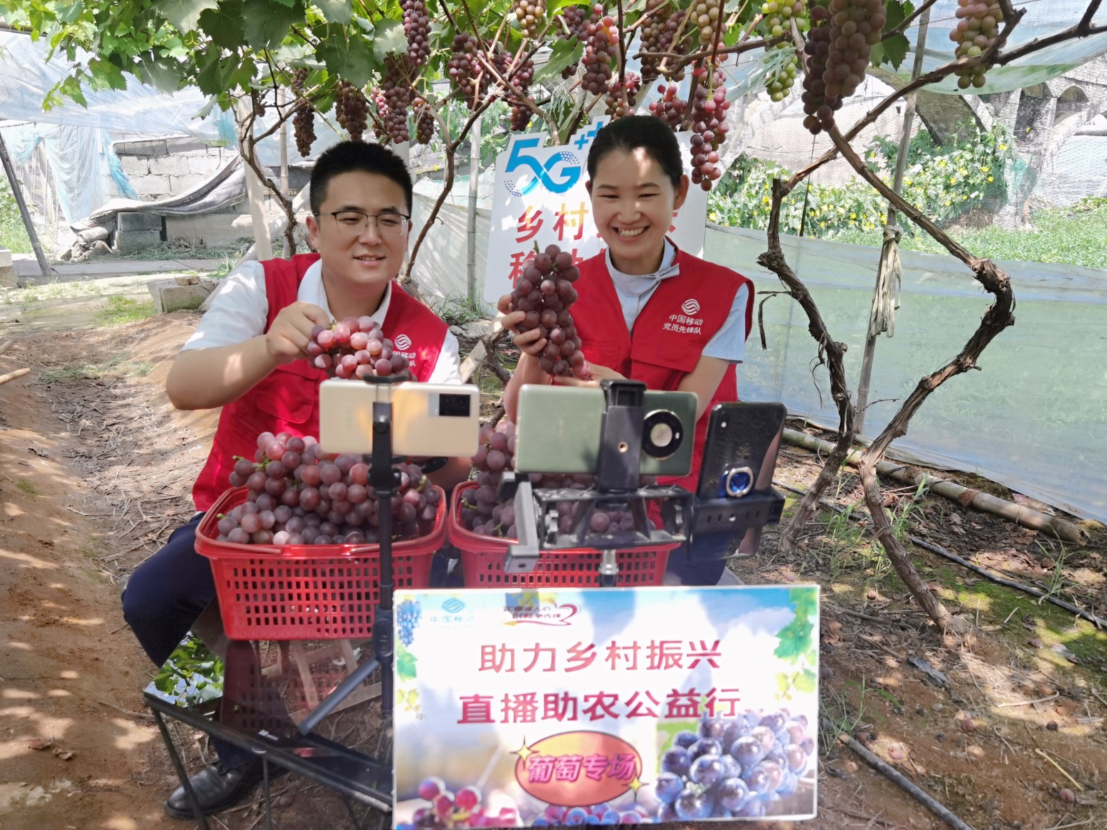 “夏黑、阳光玫瑰,黑林山区的葡萄齁甜,而且绿色健康。亲们,赶快下单吧!”近日,连云港赣榆移动“移家人”志愿者组织的“5G直播助农公益行”来到了当地汪子头村,为这里的特色农产品葡萄开展5G直播,助力农户增收。