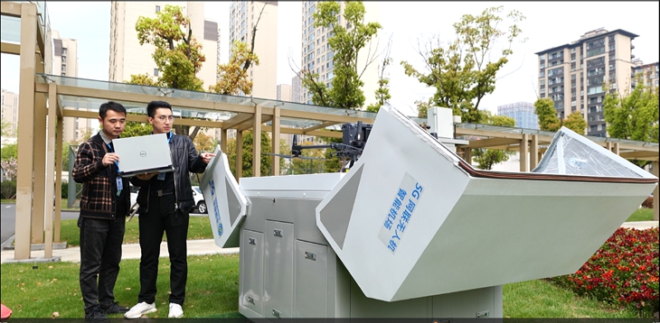 无人机单机飞行范围约为半径5公里的空域,最大飞行速度60公里/小时。常州移动据此测算机场点位,在主城区部署了36台无人机机库,确保无人机可在5分钟内飞抵主城区90%的区域。消防支队接警调度人员可在无人机飞控平台查看全量无人机机库分布情况,向距离警情发生地最近的机库下达飞行任务,远程操控无人机先于消防救援队伍飞抵现场开展空中勘察。“无人机随警出动,大大缩短了先遣侦察时空距离,为应急救援赢得了更多宝贵的时间。”常州市消防救援支队某队员如是说。